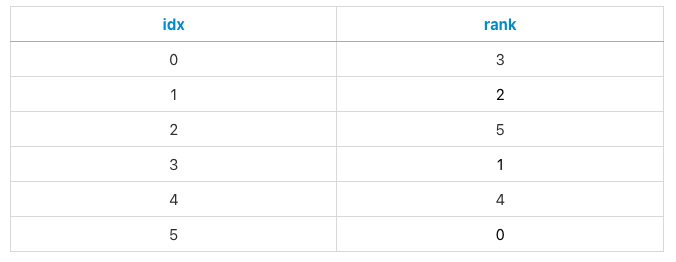 다음으로 각 접미사들을 비슷한 접미사끼리 같은 그룹으로 묶고, 각 그룹에 rank를 부여하기 위해 다음과 같은 배열을 추가적으로 만들어준다.