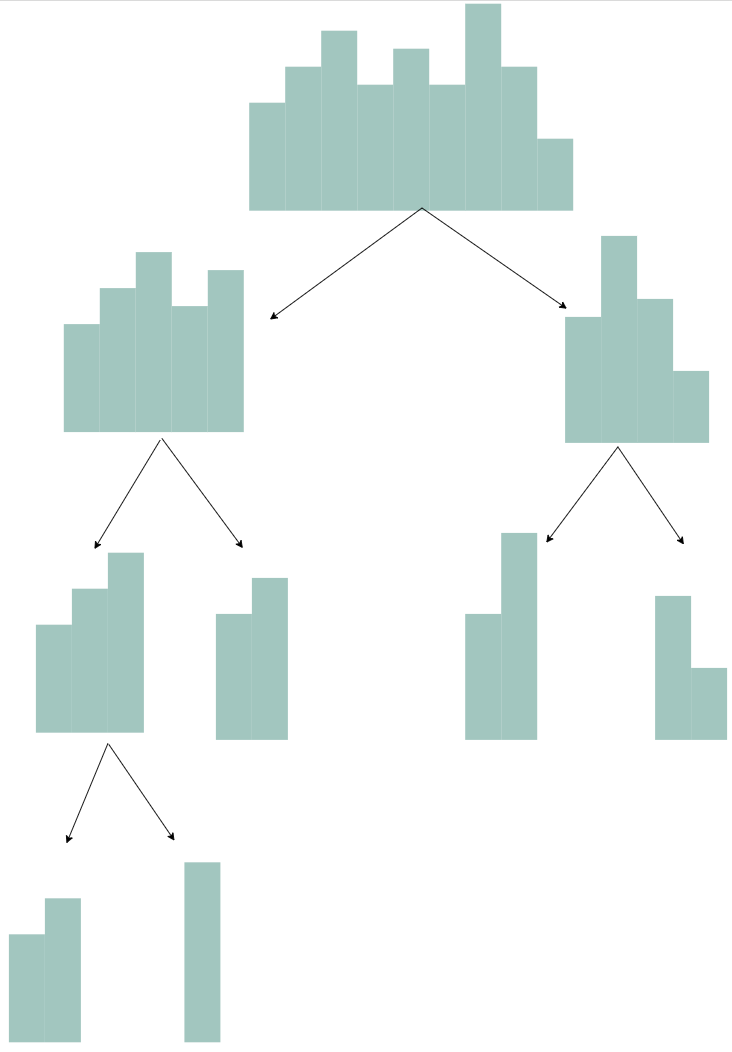 먼저 분할 정복을 활용한 풀이를 알아보자. 분할을 하는 방식도 다양하지만, 이 문제에서 나는 배열의 가운데를 기준으로 분할하는 방식을 선택했다.