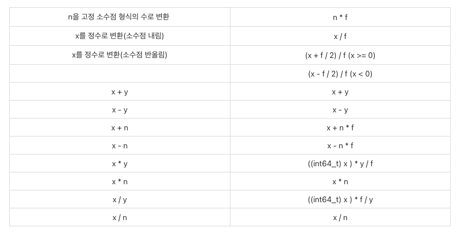 위의 식에서 nice value와 priority를 제외한 값들은 모두 실수 값을 가진다는 것을 살펴보았다. 우리의 핀토스는 부동 소수점 연산을 지원하지 않기 때문에, 고정 소수점 연산(fixed-point arithmetic)을 활용해야 한다.