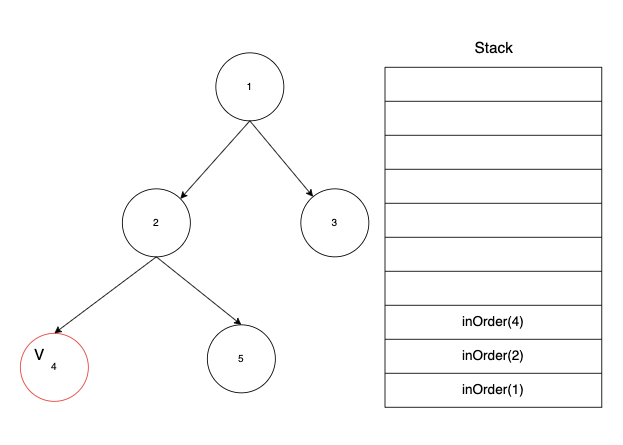 4번 노드는 더 이상 자식이 없는 리프 노드이기 때문에 방문 처리를 해준 뒤 inOrder 함수를 빠져나온다.