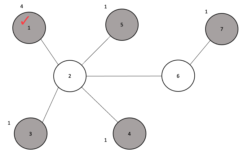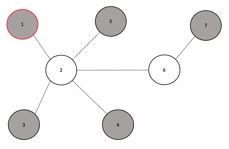 위의 그림과 같은 경우는 어떨까? 실외인 장소가 여러 개가 이어져있는데, 문제에서 주어진 경로가 트리의 형태를 따르므로 단순히 두 실외 장소와 연결된 실내 장소의 개수를 더해주면 된다! 즉, 두 개의 실외 장소를 하나의 실외 장소로 봐도 다르지 않다는 뜻이다. 따라서 우리는 장소가 실외이면 그 장소와 연결된 실내 장소의 개수를 세어주고, 만약에 또 다른 실외 장소와 연결이 되어있다면, 연결된 실외 장소로 이동하여 그 장소와 연결된 실내 장소를 다시 세어준다. 그 뒤에 모든 실내 장소의 개수를 더하여 그 값으로 답을 구하는 것이다.