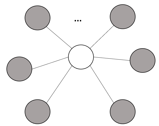 이제 이러한 풀이가 시간 초과가 발생하는 이유에 대해 생각해 보자. 위에서 언급했다시피 N의 최댓값이 무려 20만이다. 만약 단 하나의 장소가 실외이고, 나머지 모든 실내가 실외인 장소와 연결되어 있다고 생각해보자. 그림으로 나타내면 다음과 같다.